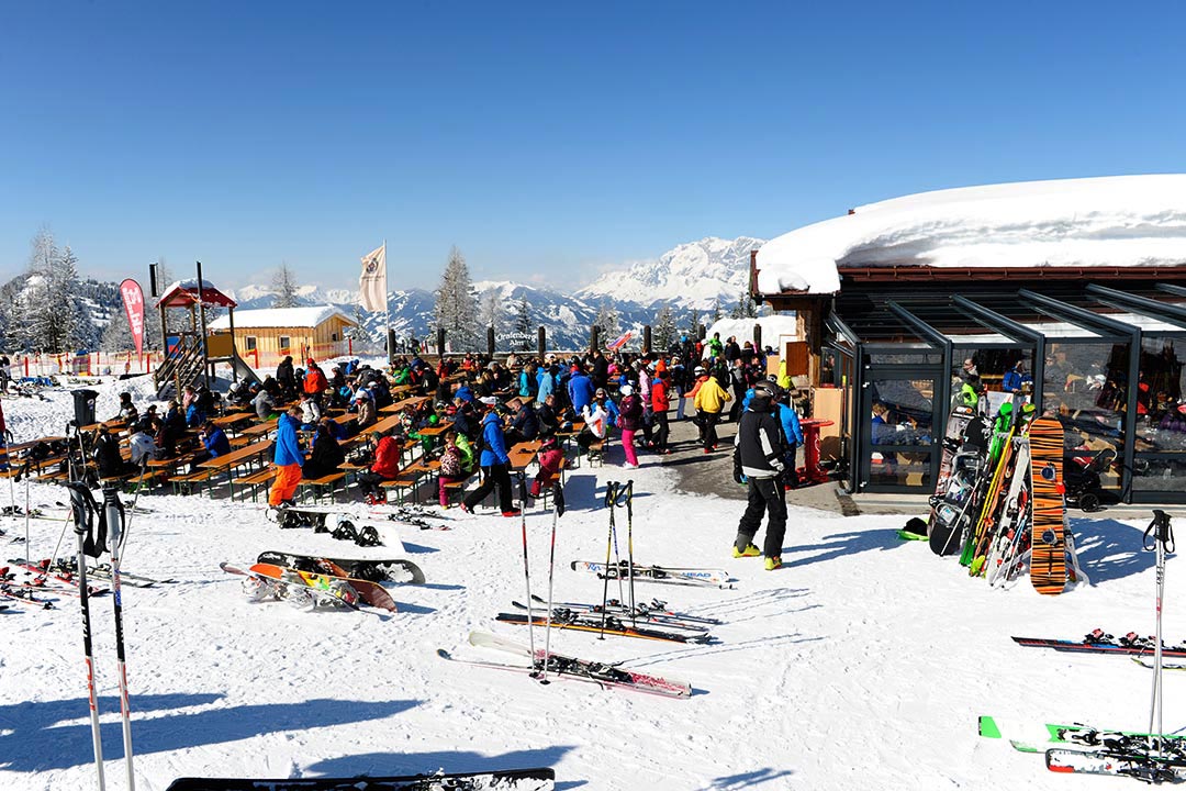 An einem der sonnigsten und schönsten Plätze in Wagrain, erwartet Sie urige Gastlichkeit und Stimmung pur.Unsere Gäste schätzen das Selbstbedienungsrestaurant mit großer Sonnenterrasse und Liegestühlen (kostenlos)..